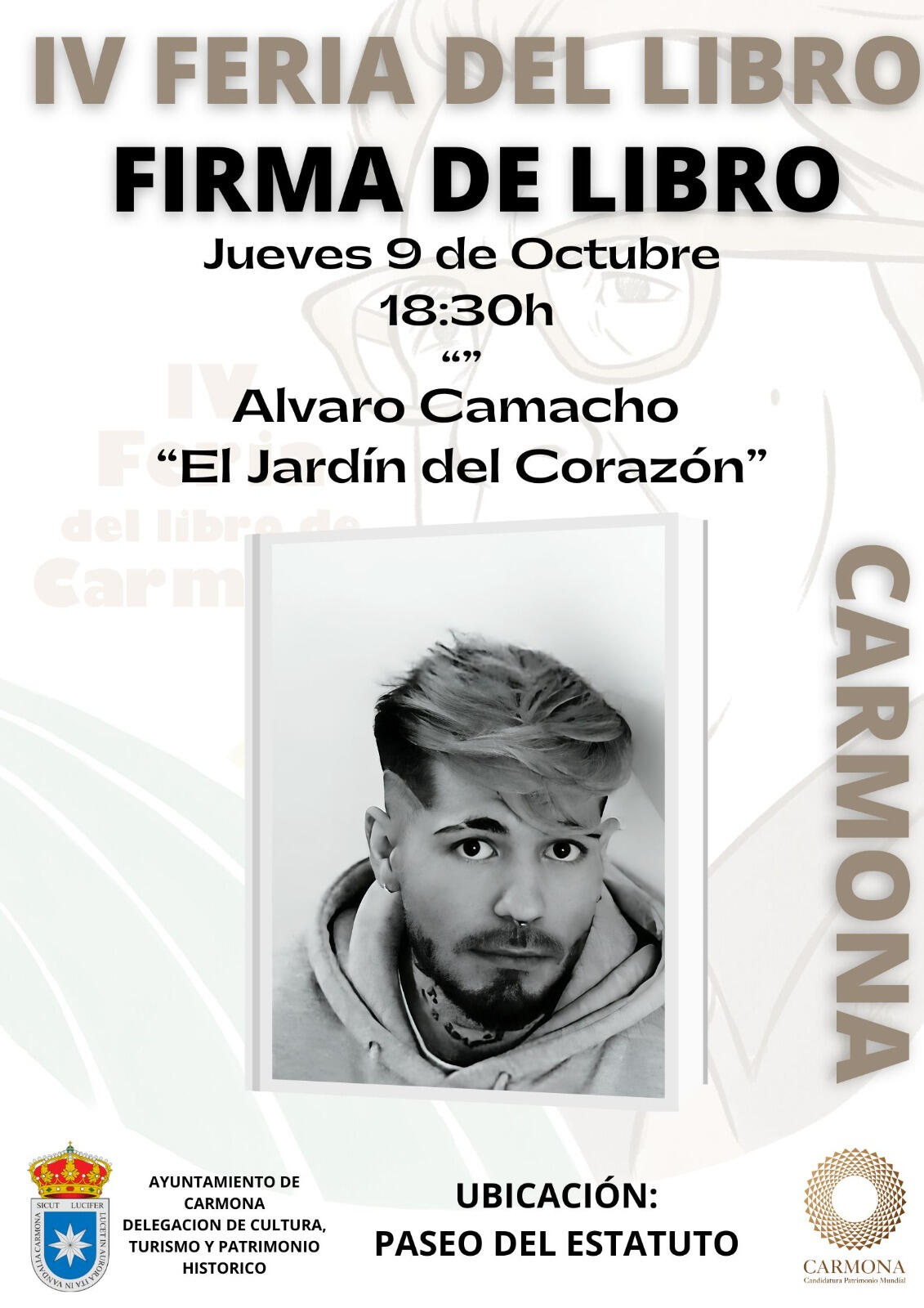 Presentación de la obra poética titulada "El jardín del Corazón" del autor español Álvaro Camacho en la feria del libro de Carmona en Sevilla.